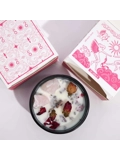 Embedded Gemstones and Flowers: Each candle features real Rose Quartz and rose petals, adding to its aesthetic and energetic properties.