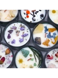 Materials: Soy Wax, Fragrance Oils, Glass Container, Jade Gemstones, Wooden Wick, Dried Flowers