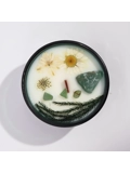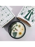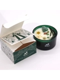 The candle is encased in a deep green glass container, symbolizing growth and renewal. The addition of delicate dried flowers enhances its visual appeal, making it a beautiful decorative piece. Each candle is thoughtfully packaged, making it an ideal gift for loved ones or a luxurious treat for yourself.