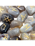 Grey agate is a semi-precious gemstone known for its calming and grounding properties. The runic symbols etched into these stones are based on the runic alphabet, which has been used for centuries in various Northern European cultures for divination and spiritual insight.