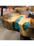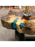 The Tamarind and Resin Coffee Table – Aqua is a versatile addition to any space, bringing a touch of luxury and natural beauty.
